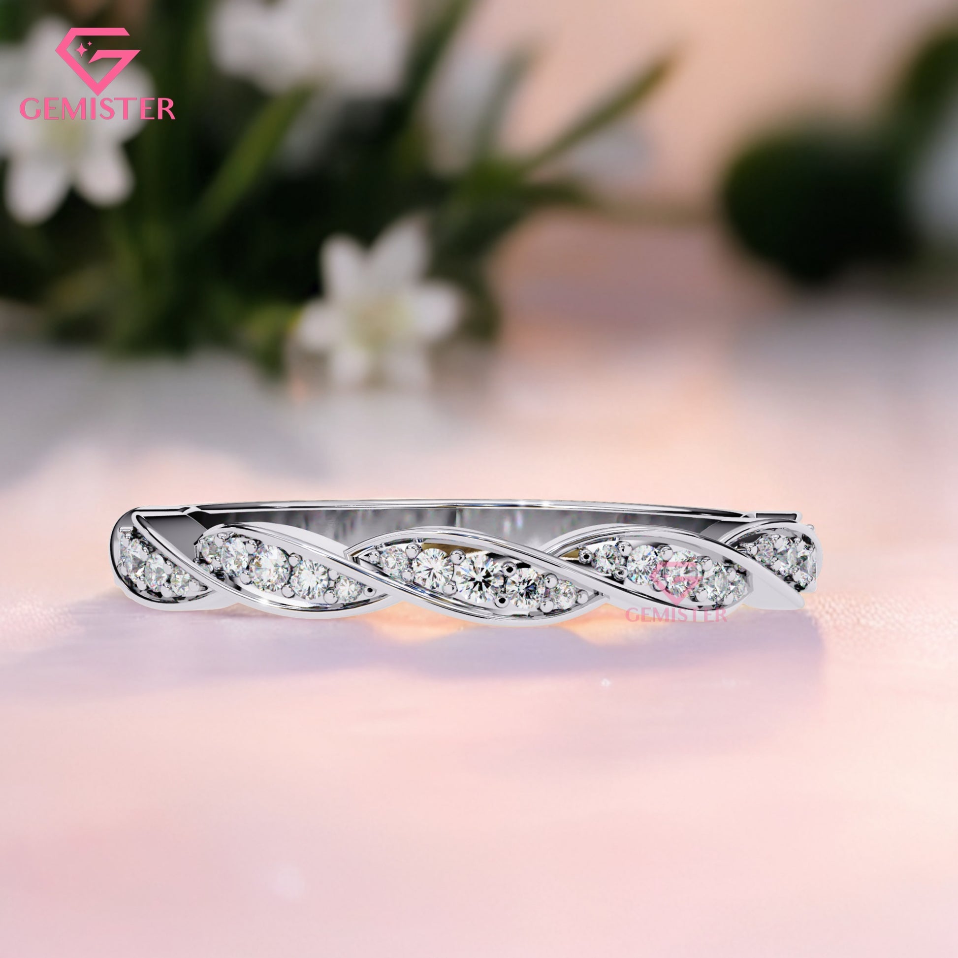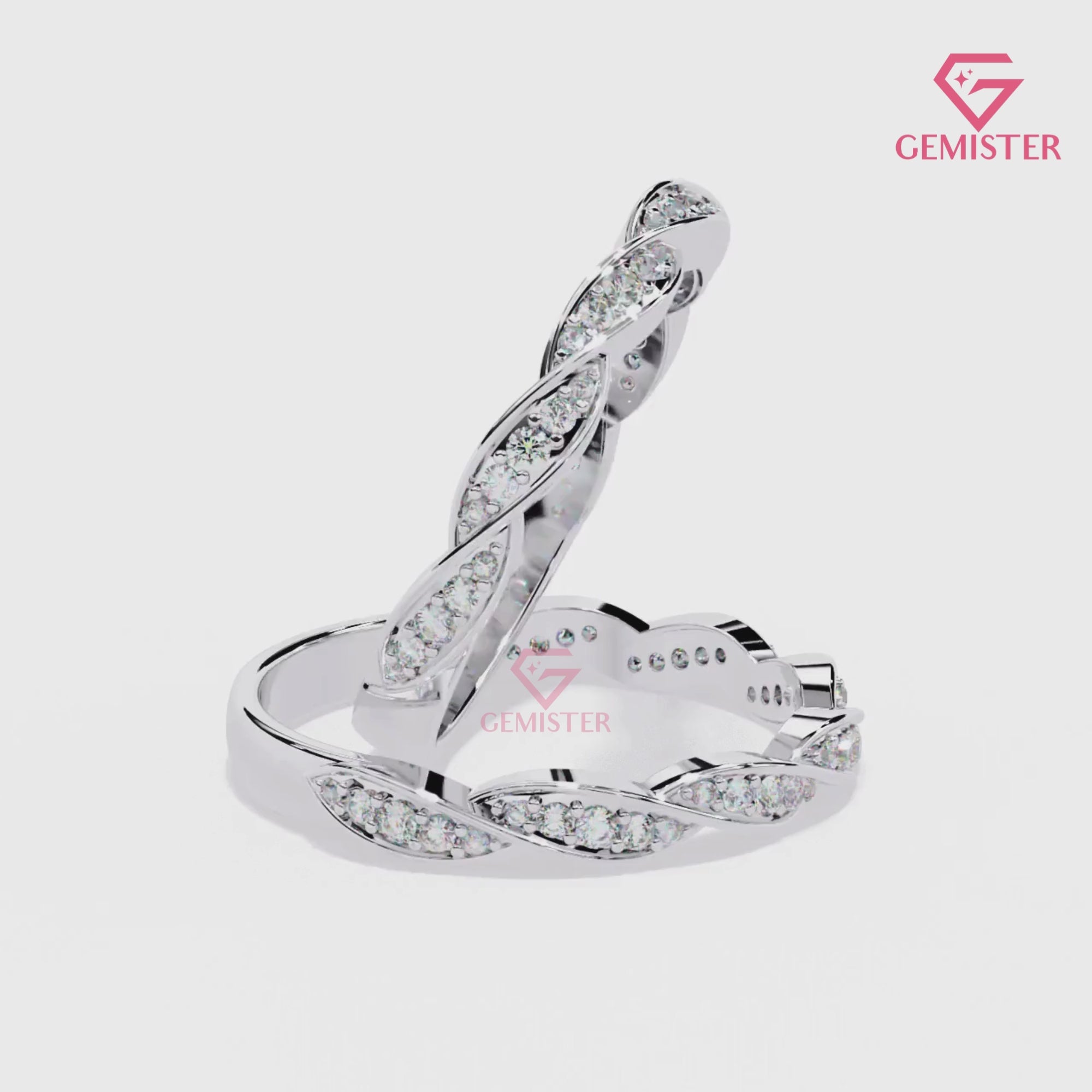 Celebrate timeless elegance with this 0.33 Ct Moissanite Twist Band Ring, crafted in solid gold and adorned with brilliant round cut diamonds. The graceful infinity-inspired twist design symbolizes everlasting love, making it a meaningful choice for special occasions.