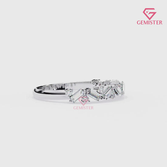 Perfect as an anniversary ring, wedding band, or stacking ring, its unique mix of cuts creates a dazzling play of light from every angle. The slim yet durable gold band ensures lasting comfort, making it ideal for both daily wear and special occasions. A stunning choice for women who love contemporary style with classic luxury.
