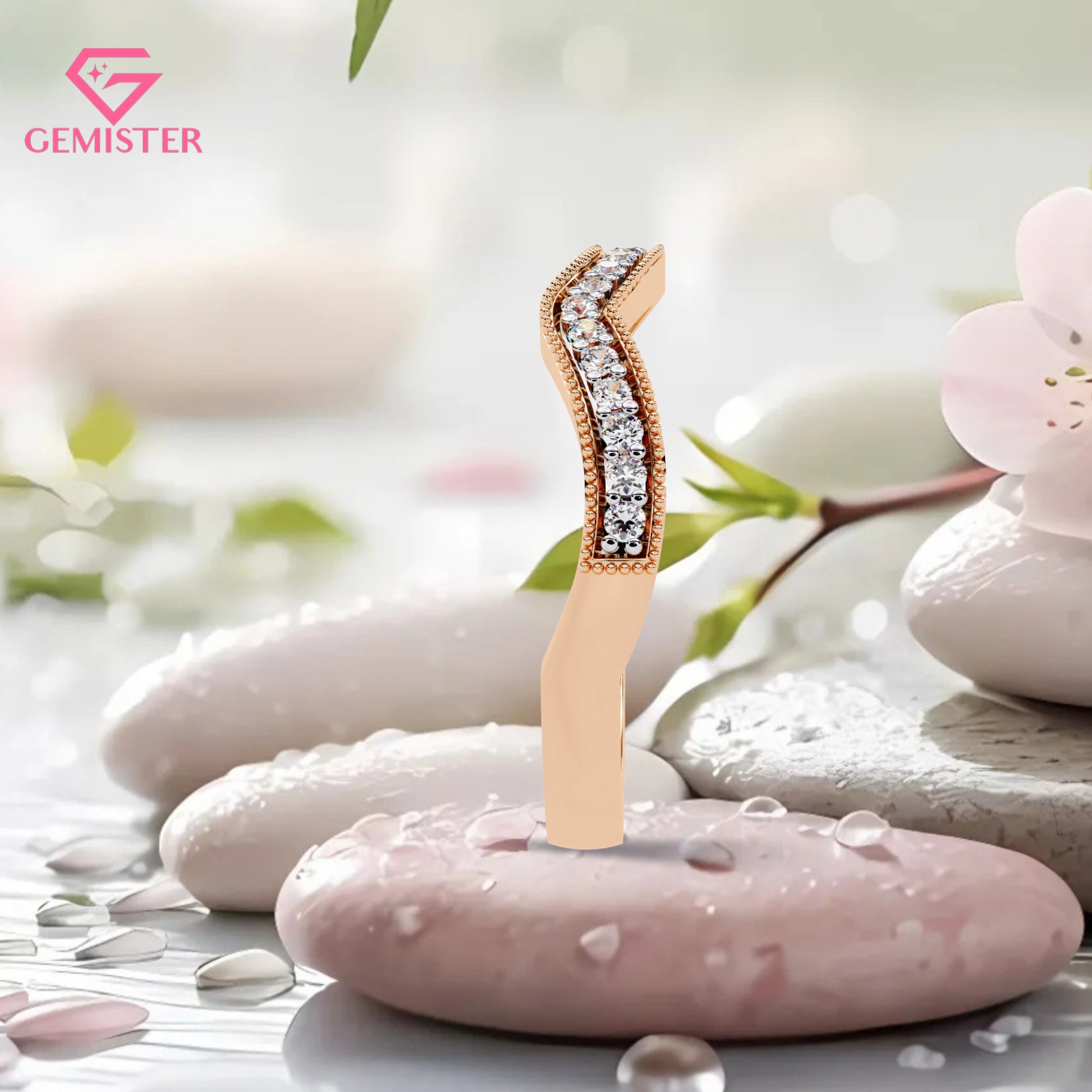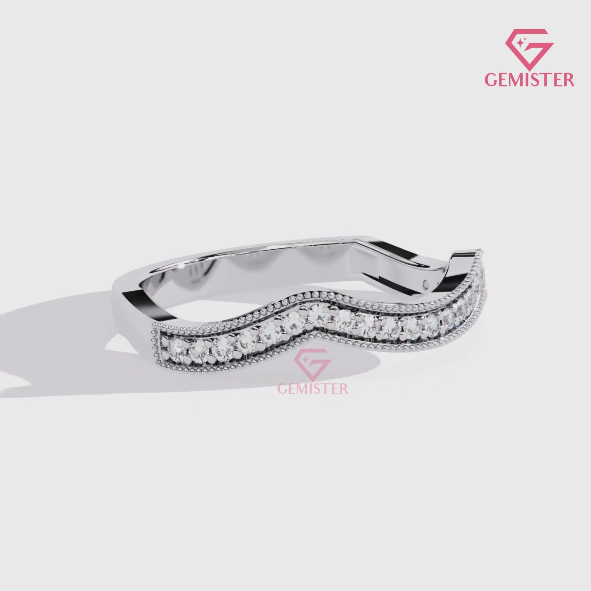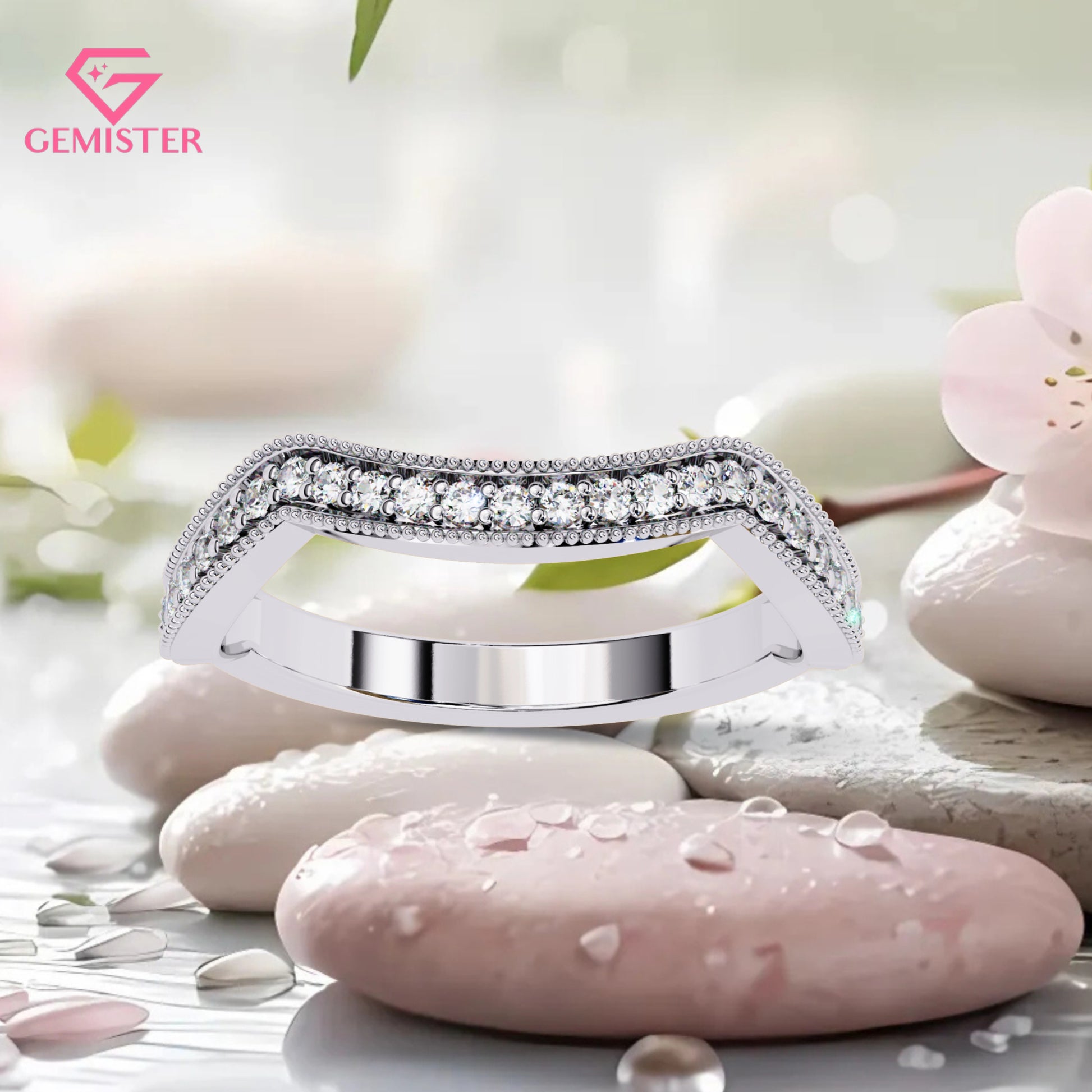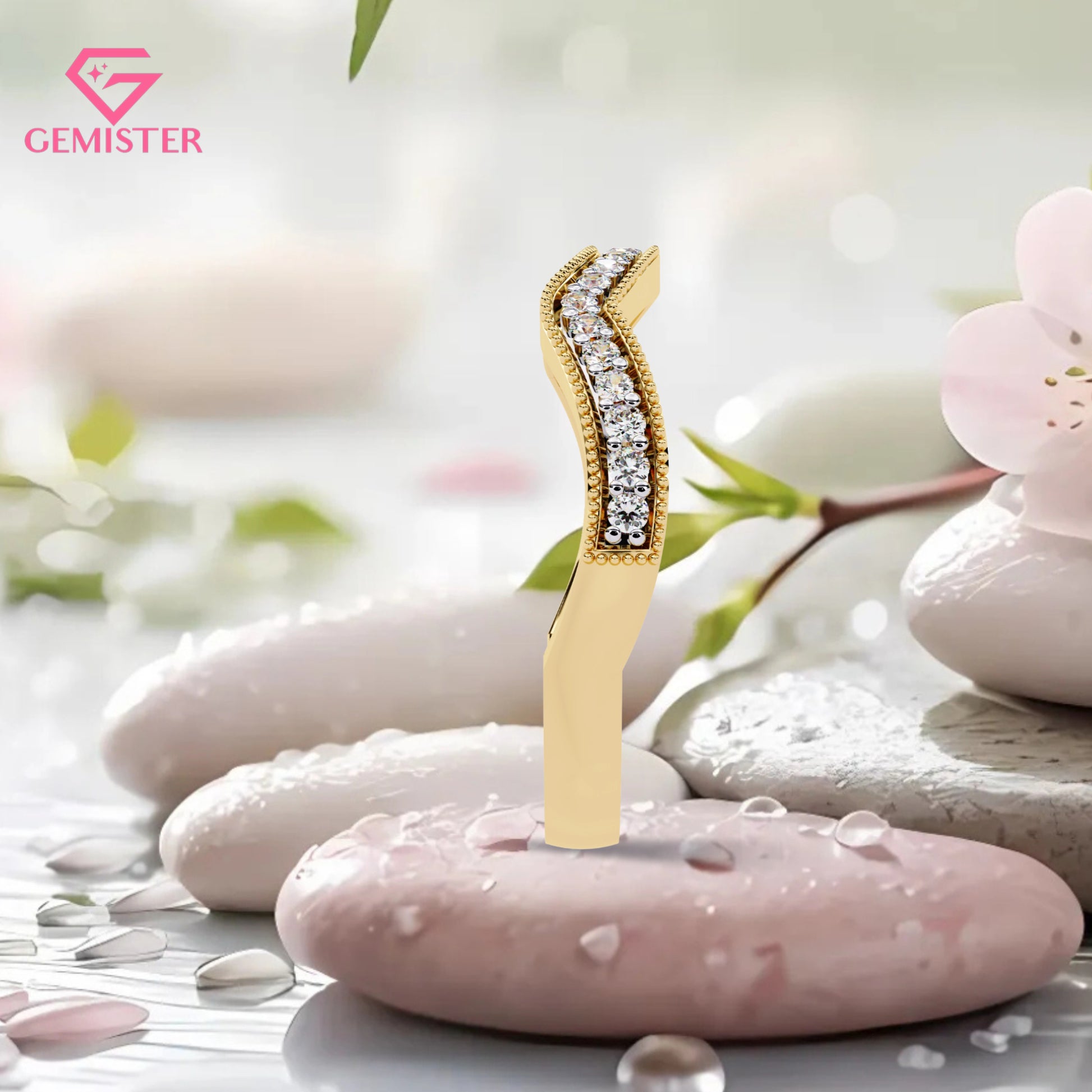 Crafted in lustrous gold, this 0.15 CT curved diamond wedding band is designed to gracefully contour and complement your engagement ring. The shimmering round-cut moissanite stones are meticulously set along the band, enhanced with delicate vintage-inspired milgrain detailing. Perfect for stacking or worn as a standalone piece, this band symbolizes timeless elegance and everlasting love. Its gentle curve ensures a flawless fit with solitaires, halos, or three-stone engagement rings. An ideal choice for weddings, anniversaries, or milestone celebrations. Handcrafted to perfection, it blends brilliance, comfort, and enduring beauty in one design.