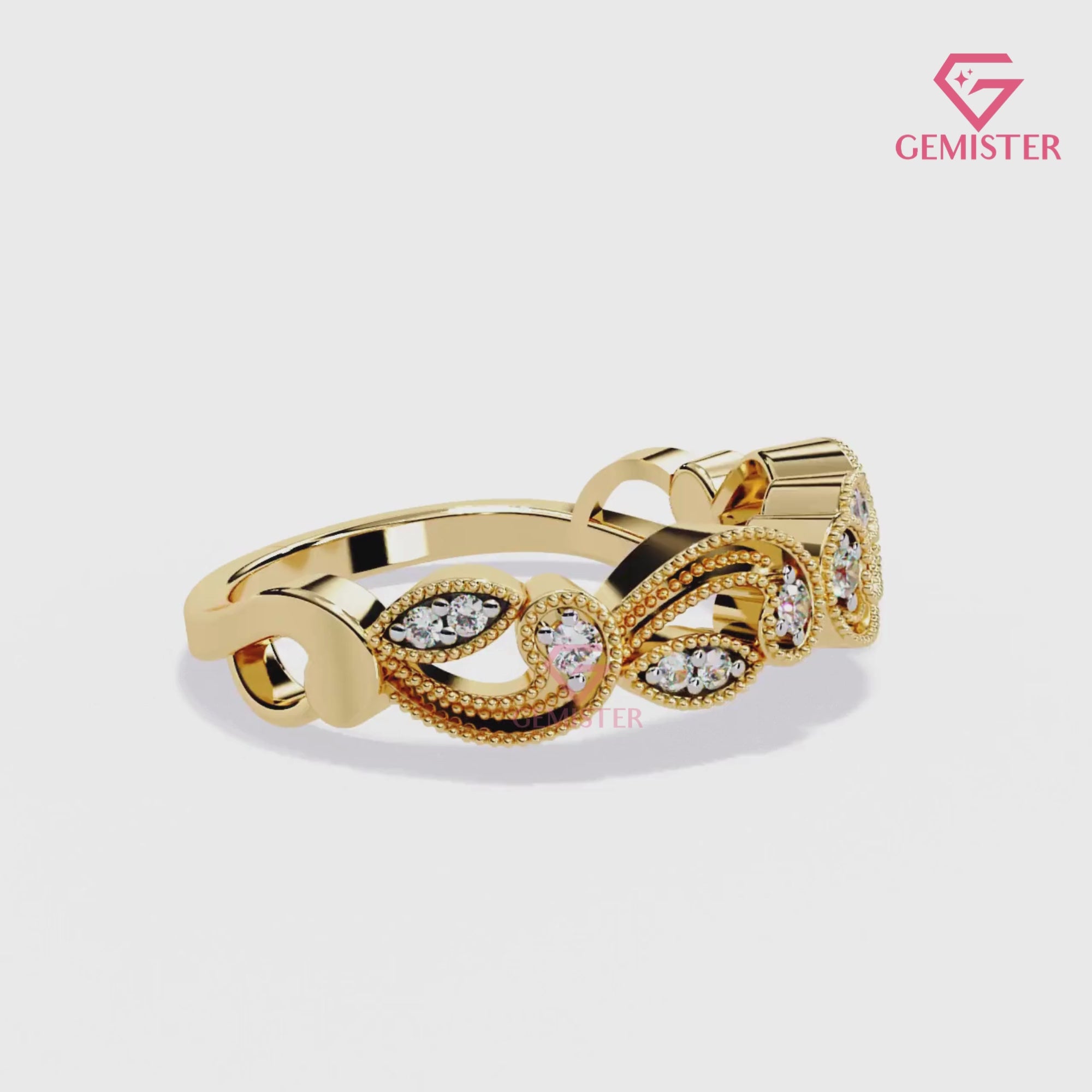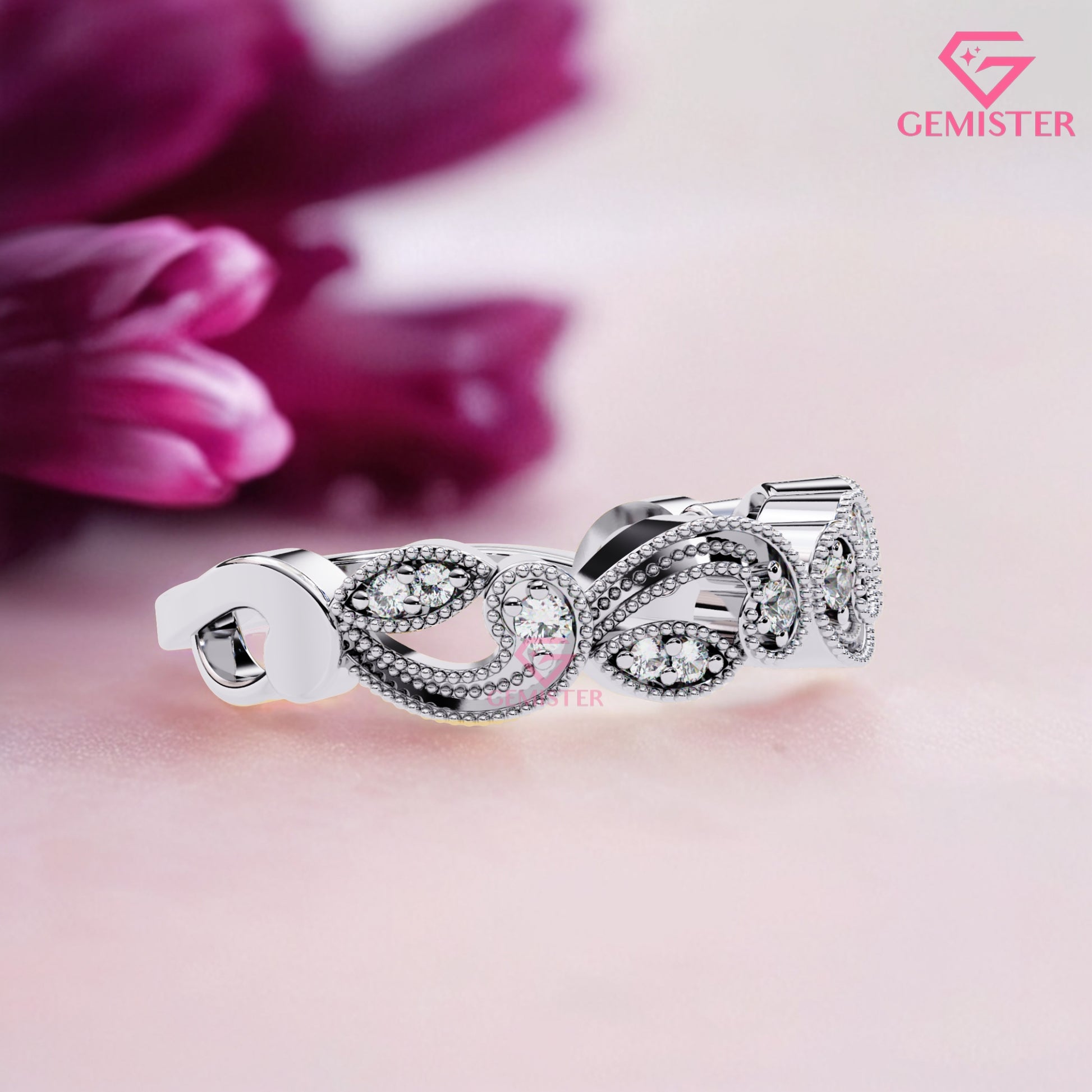 β¨ Celebrate natureβs beauty with this 0.11 CT Vintage Leaf & Vine Moissanite Band, a delicate yet timeless piece crafted in gold. Featuring sparkling round and marquise-shaped moissanite stones set within intricate milgrain leaf and vine motifs, this ring exudes elegance and artistry.