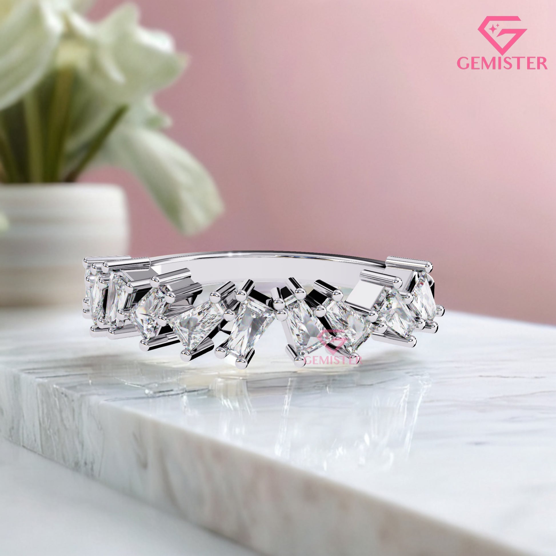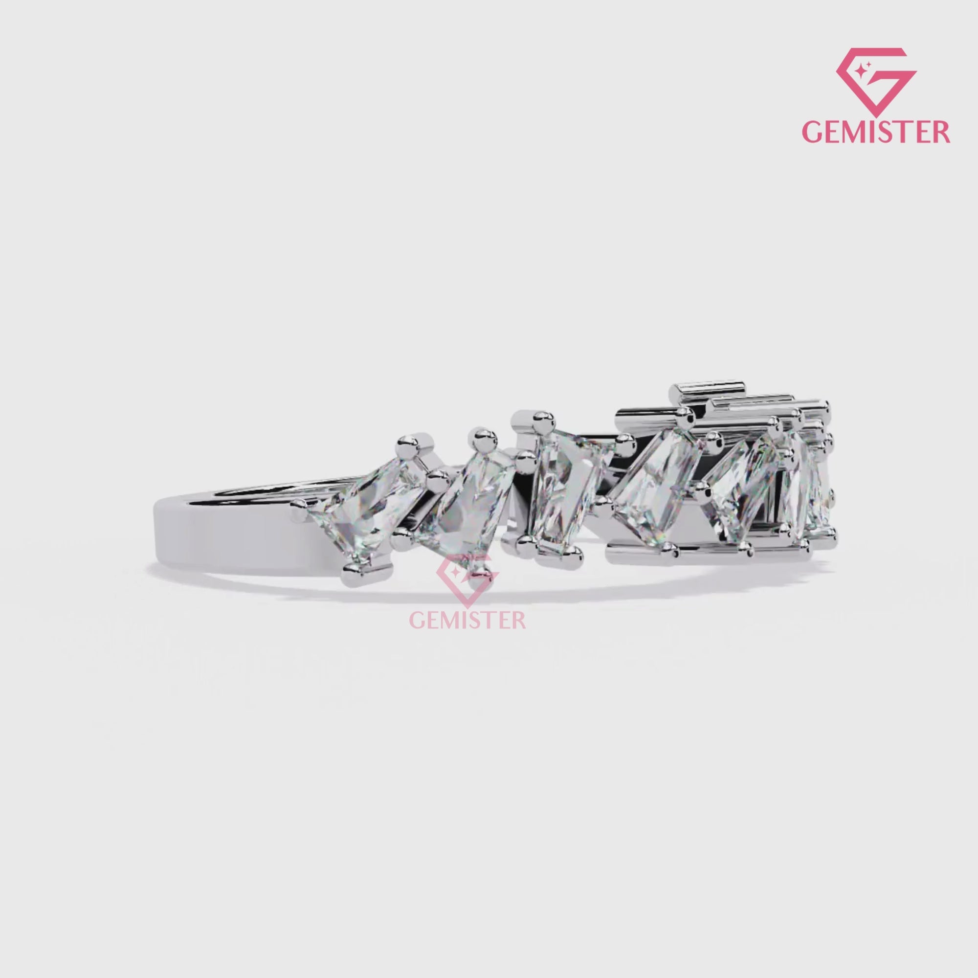 Add modern elegance to your collection with this 0.56 Ct Lab Grown Diamond Geometric Band Ring, crafted in solid gold and set with a striking mix of princess and baguette cut Lab Grown Diamonds. The sleek geometric arrangement creates a bold yet refined look, offering brilliance and sophistication from every angle.