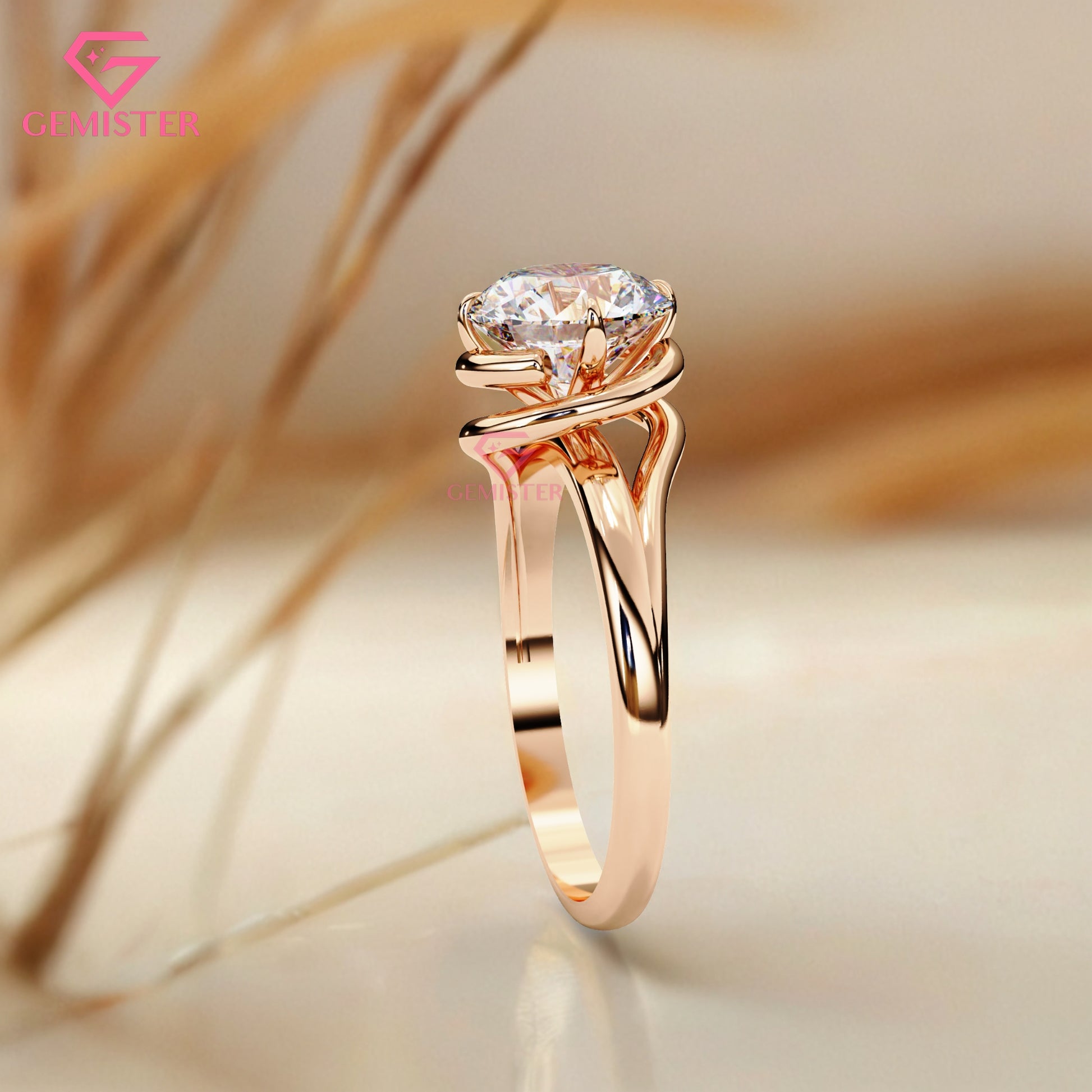 1.29 CT Round Cut Moissanite Solitaire Engagement Ring with Split Shank Gold Band – Modern Classic Bridal Jewelry