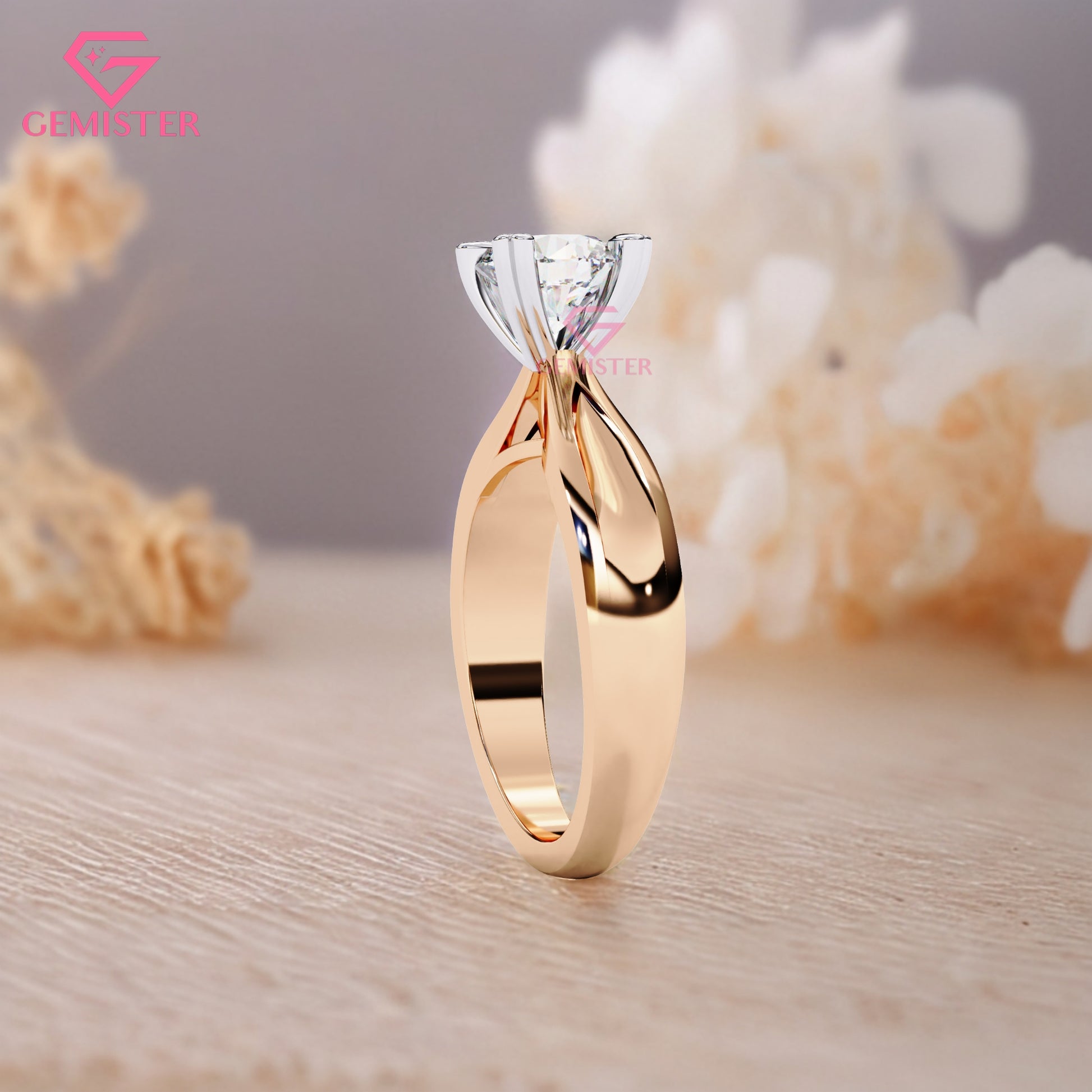 Elegant and timeless, this 1.29 CT Round Cut Lab Grown Diamond Solitaire Engagement Ring is a symbol of everlasting love. The round brilliant cut center stone, known for its unmatched sparkle and fire, radiates brilliance from every angle, ensuring it stands out in any light.