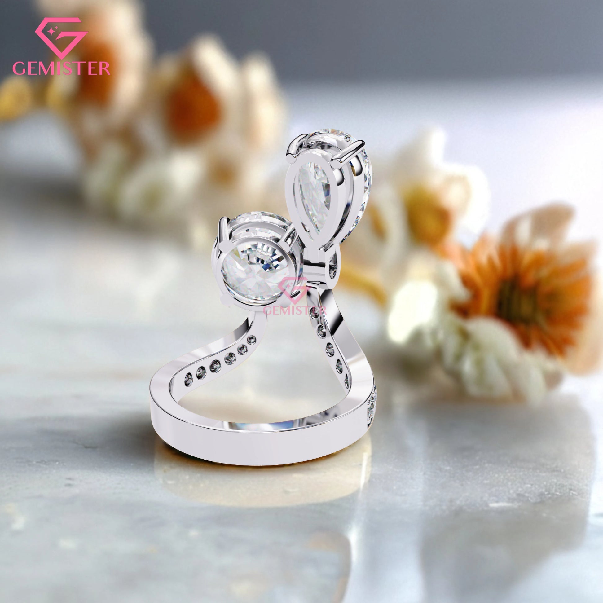 Elevate your love story with this 6.50 CT Toi et Moi Engagement Ring, showcasing a dazzling pear cut and round cut duo on a pavé diamond split band. Crafted in 14K yellow gold, this modern yet timeless design symbolizes the union of two souls. Featuring premium moissanite for unmatched brilliance and durability, it’s the perfect choice for engagements, anniversaries, or milestone celebrations.