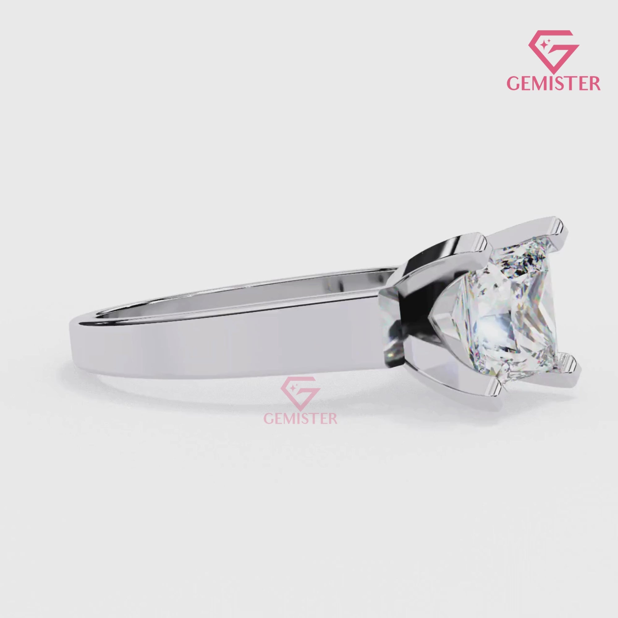 Bold and modern, this 1.72 CT Princess Cut Lab Grown Diamond Solitaire Engagement Ring is designed for brides who appreciate contemporary elegance with timeless brilliance. The princess cut center stone, with its sharp edges and intricate faceting, radiates fire and sparkle from every angle.