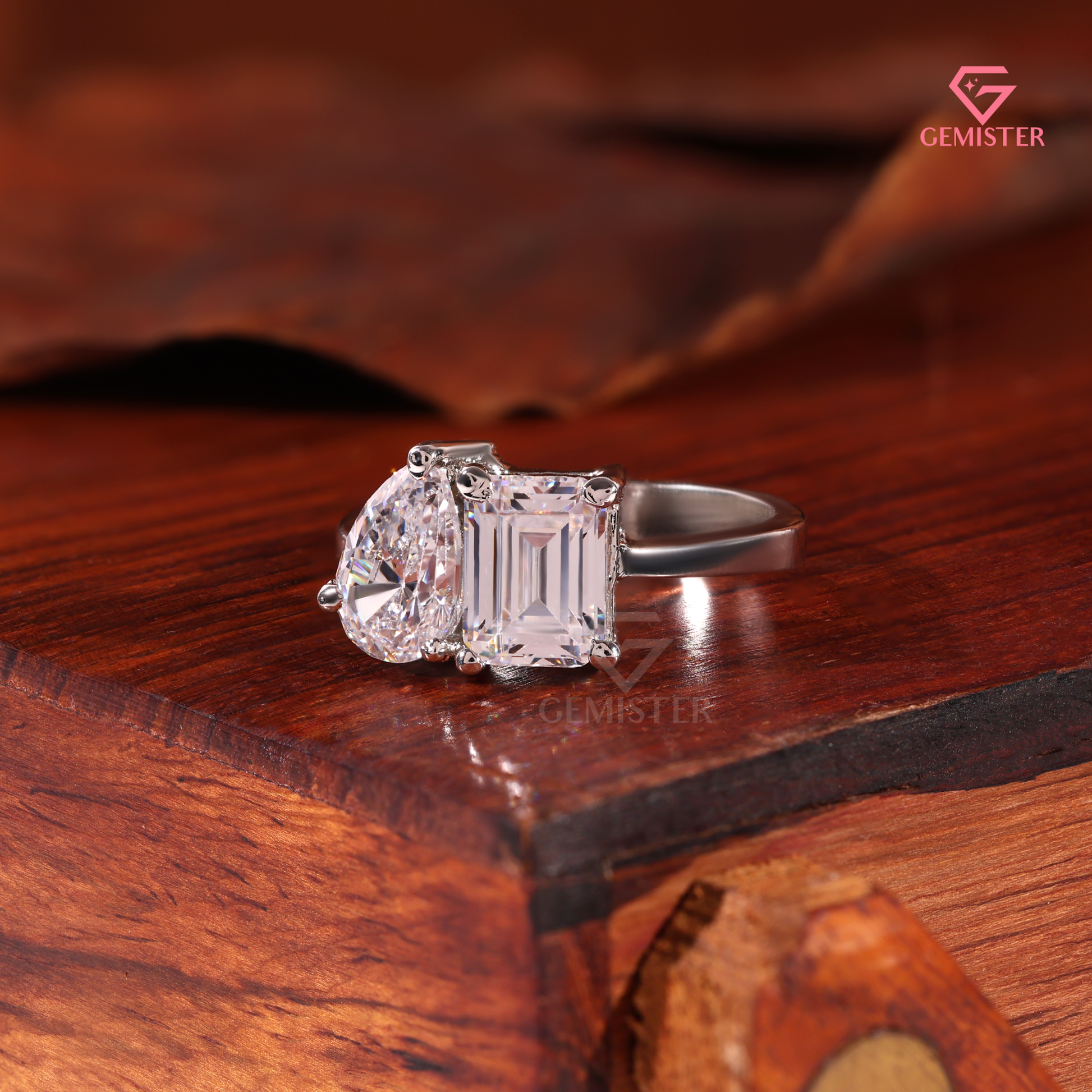Primary Stones: One Emerald-Cut and one Pear-Cut Lab-Grown Diamond (or Moissanite/Natural Diamond).