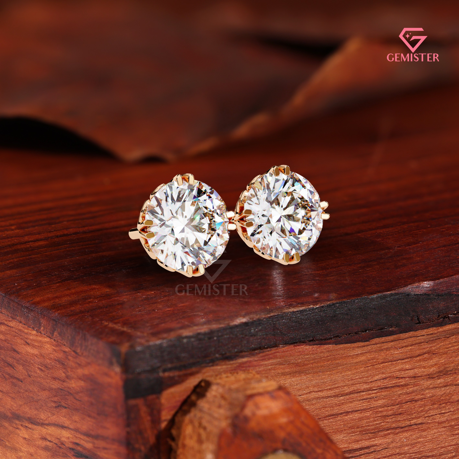 Redefine the classic solitaire with our Round Brilliant-Cut Moissanite Compass Stud Earrings. This avant-garde design features premium Moissanite center stones held by striking double-claws positioned at the compass points. This architectural choice not only provides elite security for your gemstones but also creates a unique, star-shaped visual effect that sets these studs apart from traditional four-prong designs.